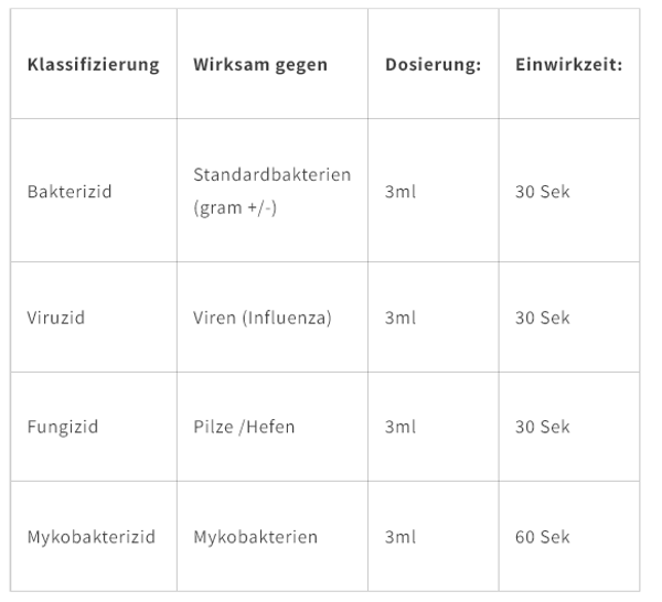 rasche Wirksamkeit (Handdesinfektion in 30 Sek)